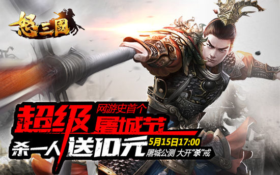 导语:今日(5月15日)17:00,超爽无限制PK网游《怒三国》即将屠城公测,双线新服“兵临城下”、“烽火连城”同步开启!为了让玩家打破战斗限制,畅享自由PK,游戏将推出超级屠城玩法,来一场大革新。同时,游戏还将启动“超级屠城节”,杀一人送10元,力邀玩家大开“杀”戒!